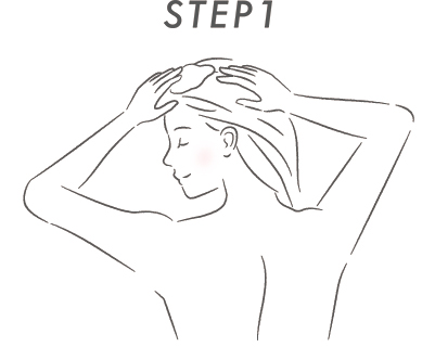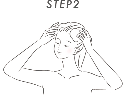 頭皮全体によくなじませ2-3分程おきます。 マッサージするようになじませます。