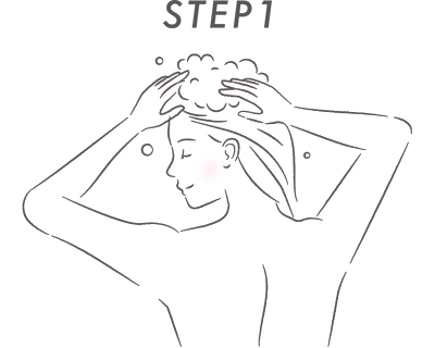 マッサージするようによくなじませた後、お湯で十分にすすいでください。