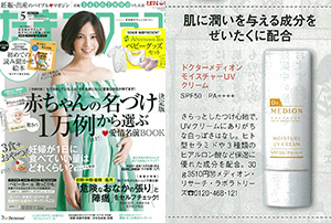 たまごクラブ2017年5月号に「ドクターメディオン モイスチャーUVクリーム」が紹介されました。「肌に潤いを与える成分をぜいたくに配合」と、紹介されています。